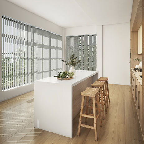 Vertical blinds are a simple and sleek option to dress any size window, including larger windows and patio doors. Their perfect straight lines allow superb light control and great privacy, being easy to control and drawing completely out the way when you wish to expose the full window. Arena blinds collection includes a huge variety of textures, finishes and over 275 fabrics to make sure that our blinds complement any setting. For the ultimate custom blind select two different colours or styles and use our mix and match service.